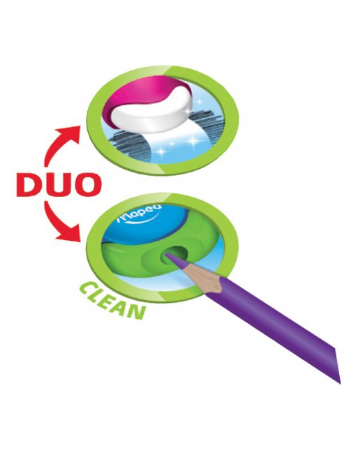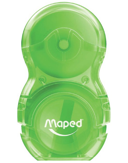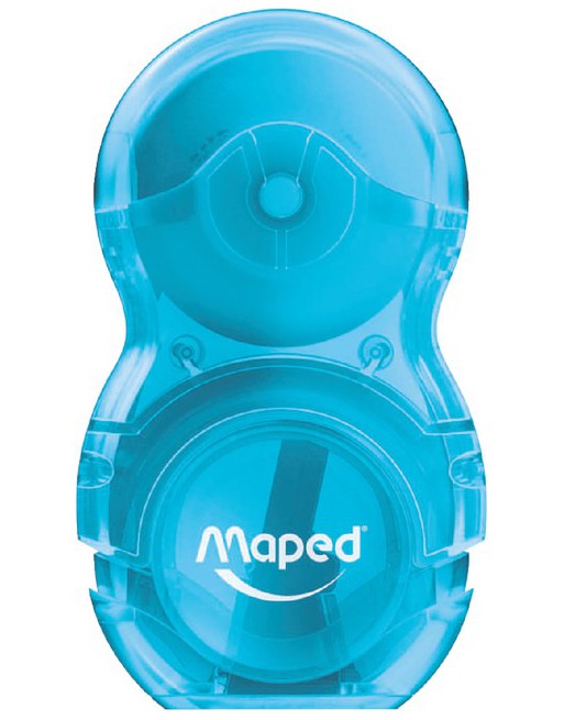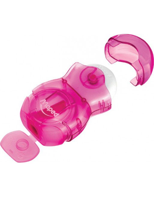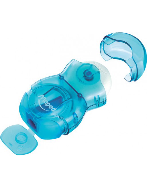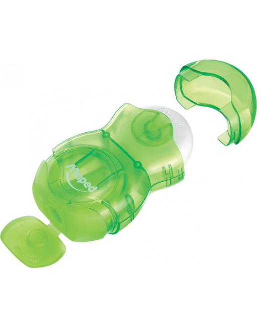 * Maped Loopy is een gecombineerde potloodslijper en gum in één. * De draaibare gum is PVC vrij. * De slijper afsluitbaar. * Gekleurd translucent materiaal. 1 stuk