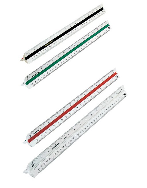 * Driekantige precisie-schaalstok met 6 schalen. * Wit perspex. * Praktische grote schaalaanduiding. * Stevig beschermetui. * Lengte 30cm. 1 stuk