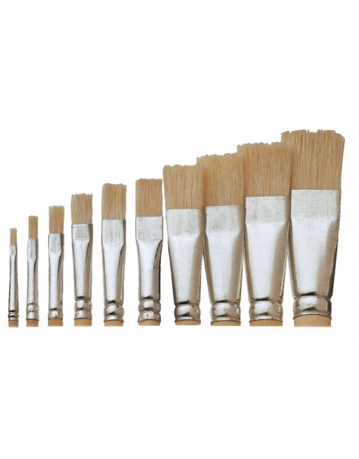 * Puur varkenshaar. * Naadloze aluminium kraag. * Houder in onbehandeld hout. * Korte haren. * Kwastbreedte: 14mm. 12 stuk