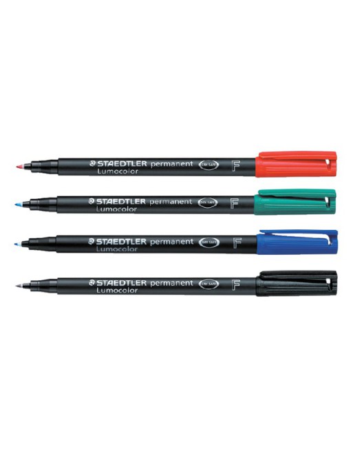* Universele stift voor vrijwel alle oppervlakken. * Watervaste inkt op alcoholbasis. * Dry Safe, kan dagenlang open liggen zonder uitdrogen. * Fijn. * Sneldrogend. * Zwart is UV bestendig. * Bestaat voor 39% uit gerecycled materiaal polypropyleen. * Fijn. * Schrijfbreedte 0,6mm. 1 set à 4 stuks