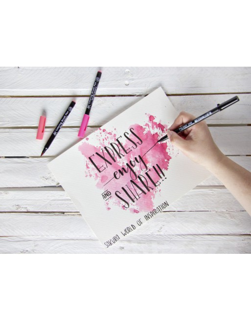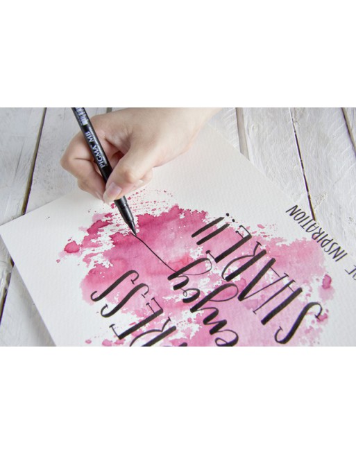 * Pigma Brush Pen is een handige pen met een flexibele penseelpunt en bevat diepzwarte Pigma inkt. * De penseelpunt is flexibel en buigt na gebruik terug in zijn originele vorm. * Superleuk als je wilt handletteren of cartoons en illustraties wilt maken. * Deze Pigma Brush Pen FB bevat een fijne penseelpunt, waarmee je fijne strepen kunt creëren. * Pigma Brush Pen komt ook in puntdiktes MB (medium) en BB (breed). * Ook deze zijn los verkrijgbaar. * Pigma In 1982 ontdekte en patenteerde Sakura een unieke formule voor inkt die kwalitatief zo goed en chemisch complex is, dat deze sindsdien wereldwijd de kwaliteitsstandaard is geworden voor betrouwbare, permanente, archiveerbare inkt. * Deze inkt, die gewaardeerd wordt om zijn kleurechtheid en resistentie tegen chemicaliën, kreeg de naam Pigma. * Pigma inkt is verkrijgbaar in diverse kleuren en pensoorten, zoals Sakura Pigma Micron (fineliners in 8 lijndiktes), Sakura Pigma Brush (penseelstiften) en Sakura Pigma Graphic (stiften met kogel- en beitelvormige punten). * Deze zijn allemaal geschikt voor talloze artistieke, functionele en technische toepassingen. * Het zijn dan ook niet alleen meer designers, wetenschappers, archivisten en architecten die op de kwaliteit van Pigma inkt vertrouwen, maar ook cartoonisten, illustratoren en manga-artiesten.