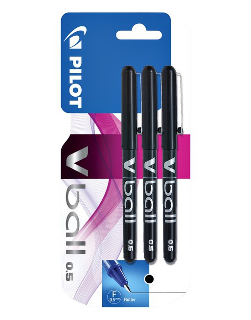 Rollerpen PILOT V-Ball grip V5 zwart 0.3mm blister à 3 stuks