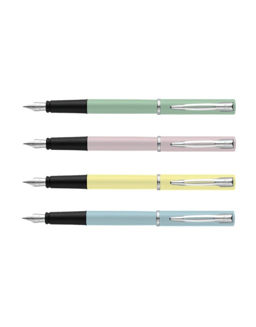 * De Waterman Allure Fountain Pen heeft een eigentijds, stijlvol ontwerp dat perfect is voor studenten en professionals. * De duurzame gegraveerde penpunt en de vloeiende inkt zorgen voor een consistente en gepersonaliseerde schrijfervaring. * Met een gedurfde maar elegante pastelkleurige afwerking onder Franse invloed is de Waterman pen een sterke eerste stap in de fijne schrijfwereld. * Gebaseerd op een klassiek Waterman-design, zorgen de gladde metalen behuizing en het assortiment moderne accenten van de Allure voor een eersteklas uitstraling die zeker indruk zal maken, of het nu in een klaslokaal of in een vergaderruimte is.