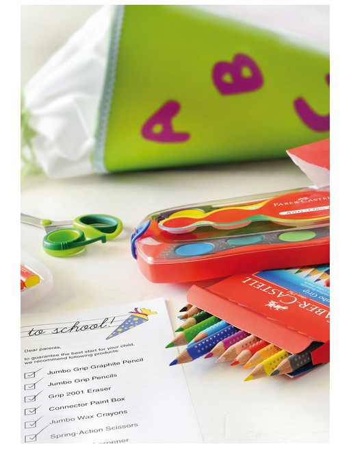 * Jumbo Grip kleurpotlood. * Dikkere, driekantige uitvoering. * Optimaal aangepast aan de ergonomie van kinderhanden. * Gepatenteerde unieke Soft-Grip-Zone, voorkomt wegglijden. * Voorzien van naamveld. * Met water te mengen en uit de meeste stoffen uitwasbaar.