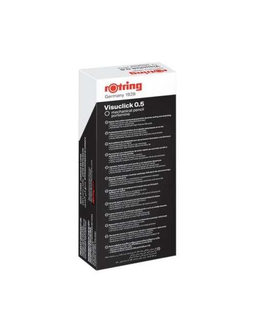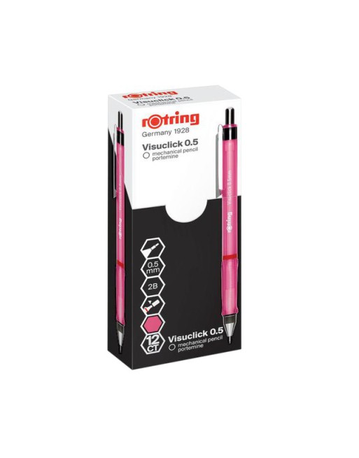 * Visuclick is een mechanisch potlood met een snelle klikactie van rOtring dat doelgericht ontworpen is als creatief gereedschap maar met precisie is ontworpen voor dynamische en optimale schrijfprestaties. * De Visuclick heeft een levendig roodkleurig driehoekig lichaam om je creatieve gedachten en visies met een ontspannen gevoel te communiceren. * Deze versie heeft een lijnbreedte van 0.5mm. * Geladen met een hoogpolymeer 2B lood.