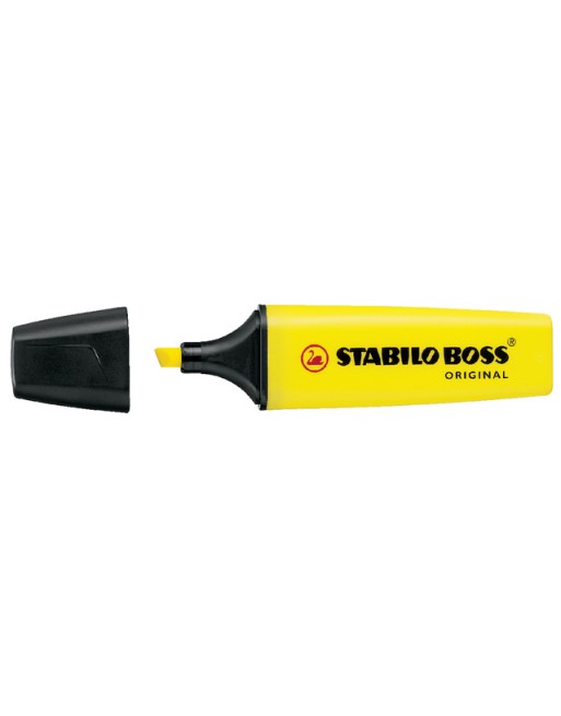 * Gele Stabilo markeerstift in blister. * Kan 4 uur zonder dop zonder uit te drogen. * 2 schrijfbreedtes in één punt, 2 + 5 mm, ideaal voor het markeren van teksten in verschillende groottes, maar ook voor het tekenen van lijnen in verschillende diktes. * Inkt op waterbasis. * Extreem hoge kwaliteit, de punt gaat zeer lang mee.