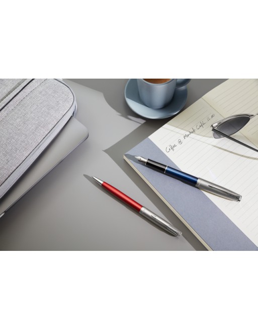 * De Sonnet Essentials rood gelakte vulpen, een klassieke ervaring met een verfijnde stijl, is het symbool van Parker voor elegantie. * Elke pen is perfect in evenwicht en is afgewerkt met een roestvrijstalen penpunt versierd met een opvallend gegraveerd patroon voor een betrouwbare en persoonlijke schrijfervaring. * Elke pen bestaat uit 17 onderdelen die met de hand in elkaar zijn gezet en gecontroleerd op onberispelijke kwaliteit, waarbij elk bijzonder detail vakkundig is uitgevoerd voor een stijlvol en verfijnd schrijfmoment. * Te gebruiken met Quink-inktpatronen of aan te passen voor het gebruik van inkt uit een potje.