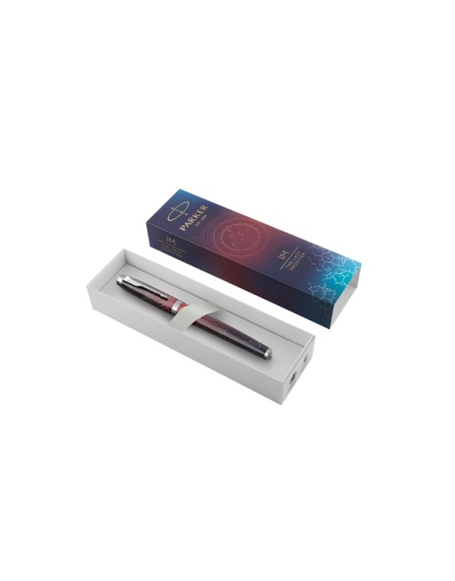 * De Parker IM Portal CT vulpen is geïnspireerd op het eindeloze universum om ons heen en brengt een eerbetoon aan degenen die hun grenzen verleggen om het onbekende te verkennen. * Met een gelakte dop en huls met kleurverloop van rood naar zwart en een voelbaar, geëtst patroon dat doet denken aan een ruimte-expeditie. * De penpunt is gemaakt van duurzaam roestvrij staal en is te gebruiken met Quink-inktpatronen of inktpotvullingen. * De perfect gevormde punt zorgt voor een betrouwbare en persoonlijke schrijfervaring. * Het wordt gepresenteerd in een Parker-geschenkdoos en is het perfecte geschenk voor jonge professionals die hun grenzen willen overschrijden om hun volledige potentieel te bereiken.