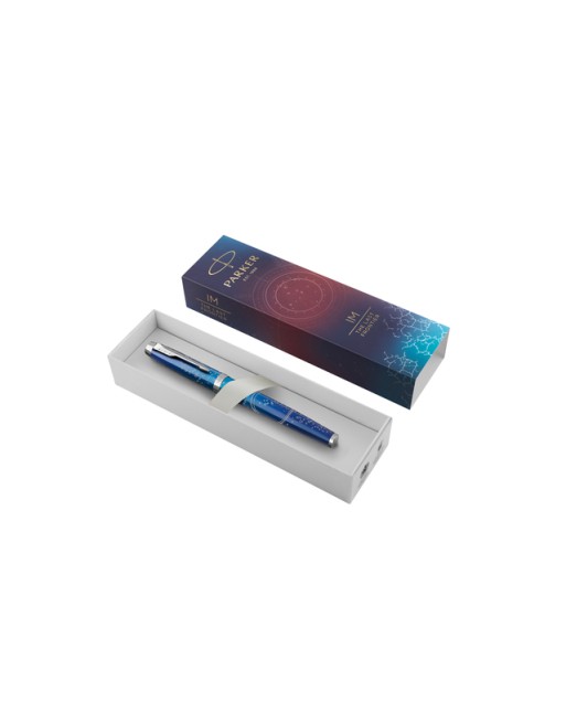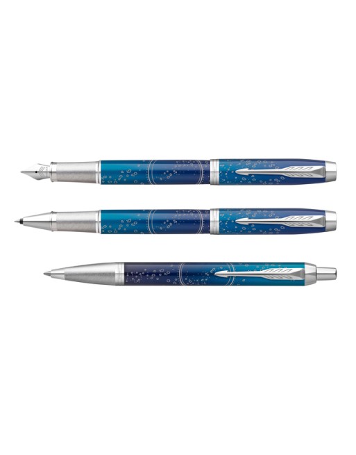 * De Parker IM Submerge CT vulpen is geïnspireerd op de uitgestrekte, onbekende diepe zee en brengt een eerbetoon aan degenen die hun grenzen verleggen om het onbekende te verkennen. * Met een blauw gelakte dop en huls met kleurverloop in twee nuances en een voelbaar, geëtst patroon dat doet denken aan een diepzee-expeditie. * De penpunt is gemaakt van duurzaam roestvrij staal en is te gebruiken met Quink-inktpatronen of inktpotvullingen. De perfect gevormde punt zorgt voor een betrouwbare en persoonlijke schrijfervaring. * Het wordt gepresenteerd in een Parker-geschenkdoos en is het perfecte geschenk voor jonge professionals die hun grenzen willen overschrijden om hun volledige potentieel te bereiken.