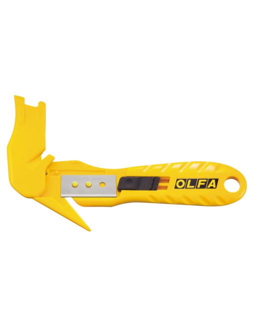 * Veiligheidscutter voor het snijden vanverpakkingsfolie zonder de inhoud te beschadigen dankzij het verborgen mesje in het lichaam van de cutter, * De cutter is eveneens uitgerust met een tape-mesje voor het openen van shrink-folie en plastic straps. * Elk mesje heeft 4 snijdende punten. * Vervangmes: SKB-10.