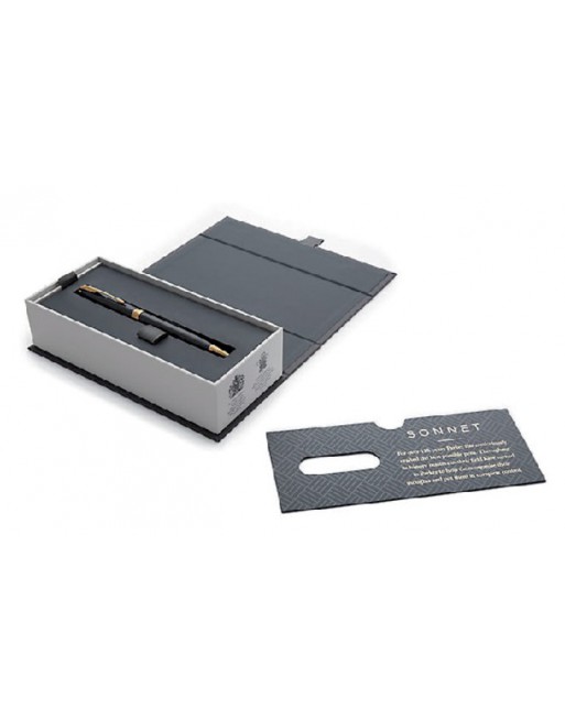 * Een klassieke ervaring met een verfijnde stijl, * Sonnet is het symbool van Parker voor elegantie. * Met een scala aan uitvoeringen, elk bijzonder detail is vakkundig uitgevoerd om tot een verfijnde schrijfervaring te komen. * Black Lacquer GT, afgelakt in een diepzwarte, glanzende vernis en een vergulde afwerking. * Verpakt in een hoogwaardige luxe geschenkverpakking. 1 stuk