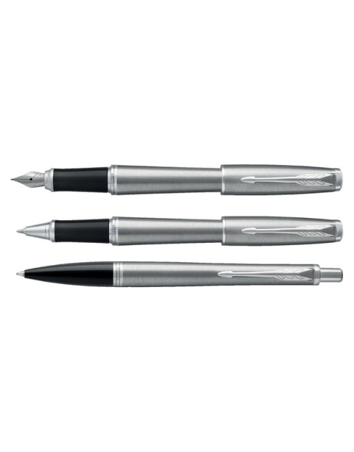 * Urban - onderscheidende stijl met opmerkelijke prestaties. * De in-het-oog-springende Urban brengt meer dan een eeuw traditie naar een nieuw en dynamisch niveau. * Het golvend ontwerp en de verschillende afwerkingen werden ontworpen om persoonlijke stijl te benadrukken en zelfvertrouwen uit te stralen met elk woord. * Metro Metallic CT, metalen afwerking met ronde vormen om de hoogwaardige kwaliteit van de afwerking te benadrukken. * Afgewerkt met chromen details en een edelstalen penpunt. * Verpakt in een Parker geschenkverpakking. 1 stuk
