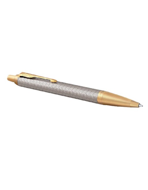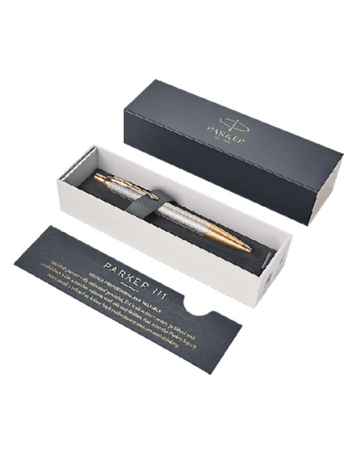 * IM - uiterst professioneel en betrouwbaar. * De Parker IM, de ideale partner met onbegrensde mogelijkheden is zowel aantrekkelijk, gepolijst en gerenomeerd. * In duurzame afwerkingen die verwijzen naar de rijke Parker traditie.* Premium Warm Grey GT, mat zilverkleurig geanodiseerd aluminium met een tastbaar bewerkt motief. * Voorzien van goudkleurige afwerkingen en een edelstalen penpunt. * Verpakt in een luxe geschenkverpakking. 1 stuk
