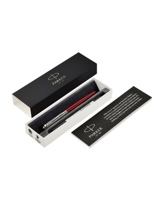 * Parker Jotter Kensington Red Chrome Trim Rollerpen met medium schrijfpunt en bevat een zwarte inktvulling. * Hiermee heeft u een geweldige pen in uw handen. * De schitterende looks worden gecombineerd met de bekende Parker degelijkheid en functionaliteit. * De Parker Kensington Red Chrome Trim Rollerpen heeft een roestvrijstalen body en een rode afwerking met een zilverkleurige clip. 1 stuk