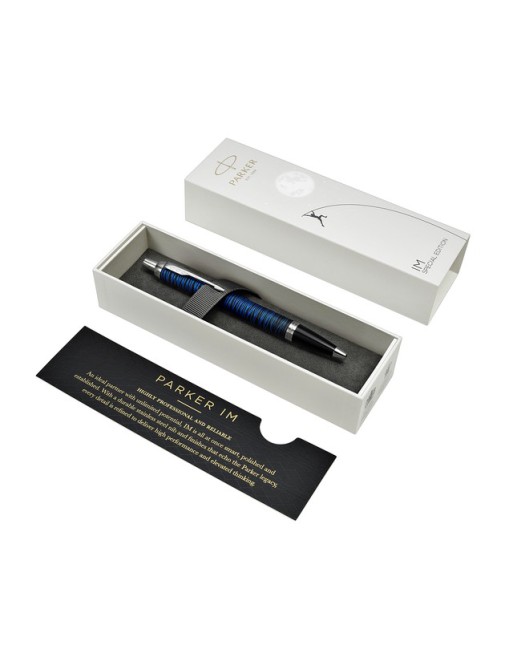 * Parker IM Special Edition Blue Origin Chrome Trim Balpen. * De Parker IM, de ideale partner met onbegrensde mogelijkheden is zowel aantrekkelijk, gepolijst en gerenommeerd.