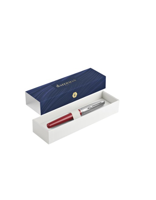 * Waterman Emblème Red CT vulpen met medium schrijfpunt en een blauwe inktvulling. * ''Emblème'' is de nieuwe Waterman-collectie met moderne harskleuren en een zwarte afwerking. * Dit ontwerp is geïnspireerd op Parijs, evenals zijn roestvrijstalen kap en zijn grote schrijfpunt.* Met giftbox.