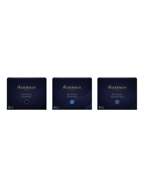 * Met een Waterman vulpen ontdekt u opnieuw een authentieke schrijfsensatie en creëert u uw eigen, unieke expressie. * Of u nu kleine of grote inktpatronen gebruikt, u ervaart nog meer schrijfplezier vanwege de verfijnde elegantie en de authenticiteit van deze vloeibare inkt die verre herinneringen wakker weet te roepen. * Doos à 8 stuks. 1 pak x 8 stuk