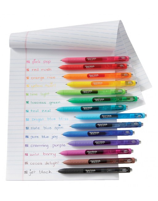 * Eindelijk een gel pen waar je blij van wordt, een gel pen die niet veegt. * Gelpennen schrijven zeer vlot en mooi met hun levendige en uitgesproken lijnen, vaak zijn de inktvlekken echter de spelbreker.* Dus wat je ook schrijft, waar je ook aan werkt, het wordt plots veel leuker met deze unieke pennen. * Fleur je schrijven, je tekenen op, spread Joy met de Paper Mate Inkjoy gelpen. 12 stuk