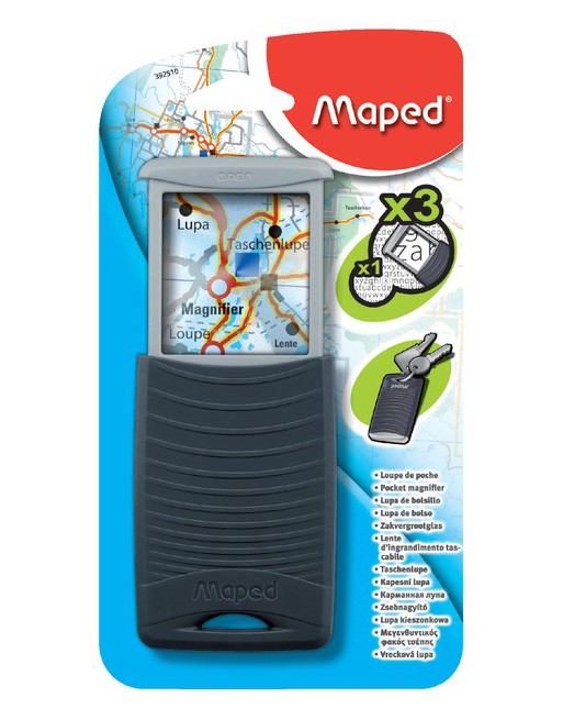 * Pocket vergrootglas 48x43mm (ingeklapt) met beschermhuls. * Vergroting x3. Blister à 1 stuk